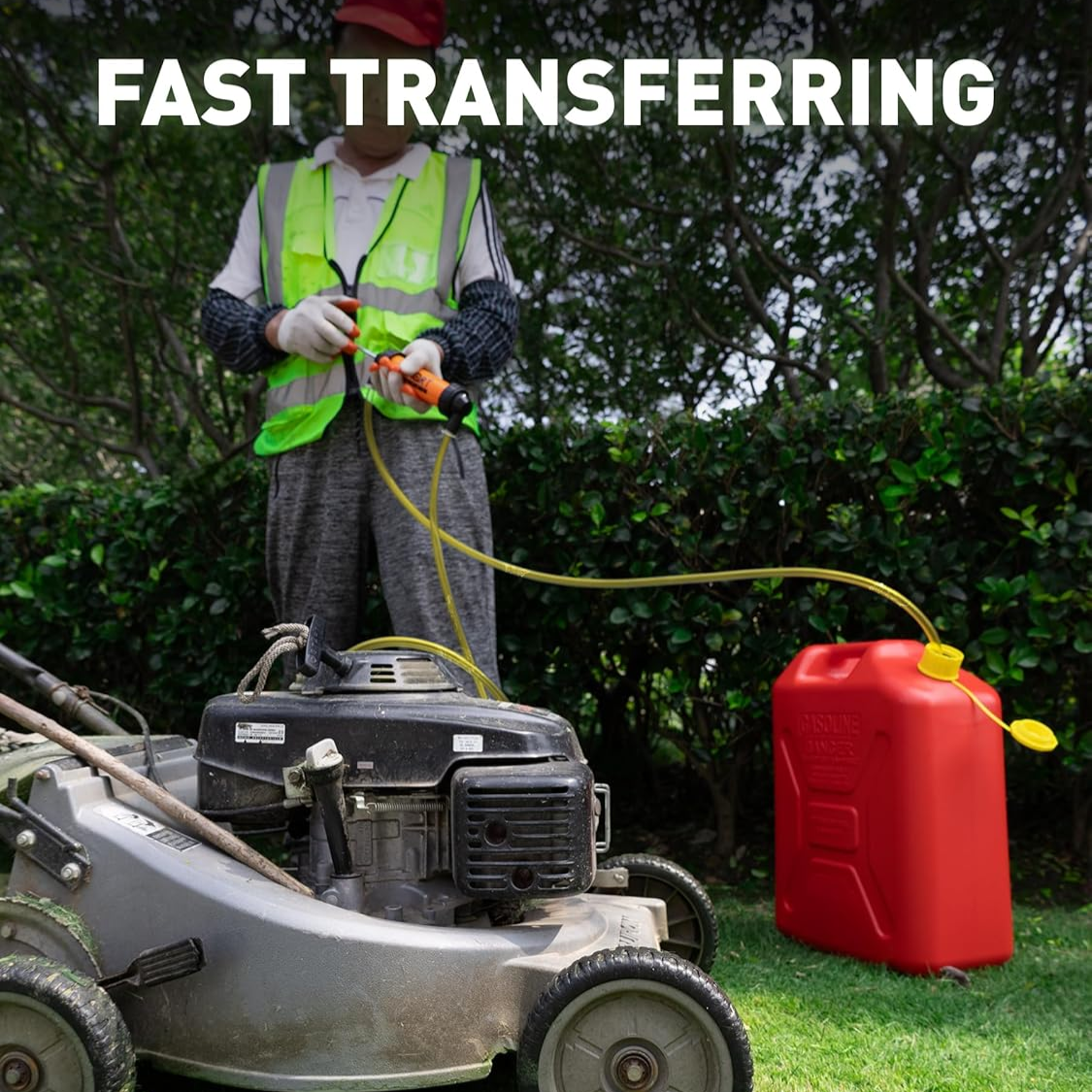 Portable, cordless, and battery-free. Ideal for transferring gasoline, diesel, oil, and coolant in cars, trucks, RVs, lawn mowers, and more.